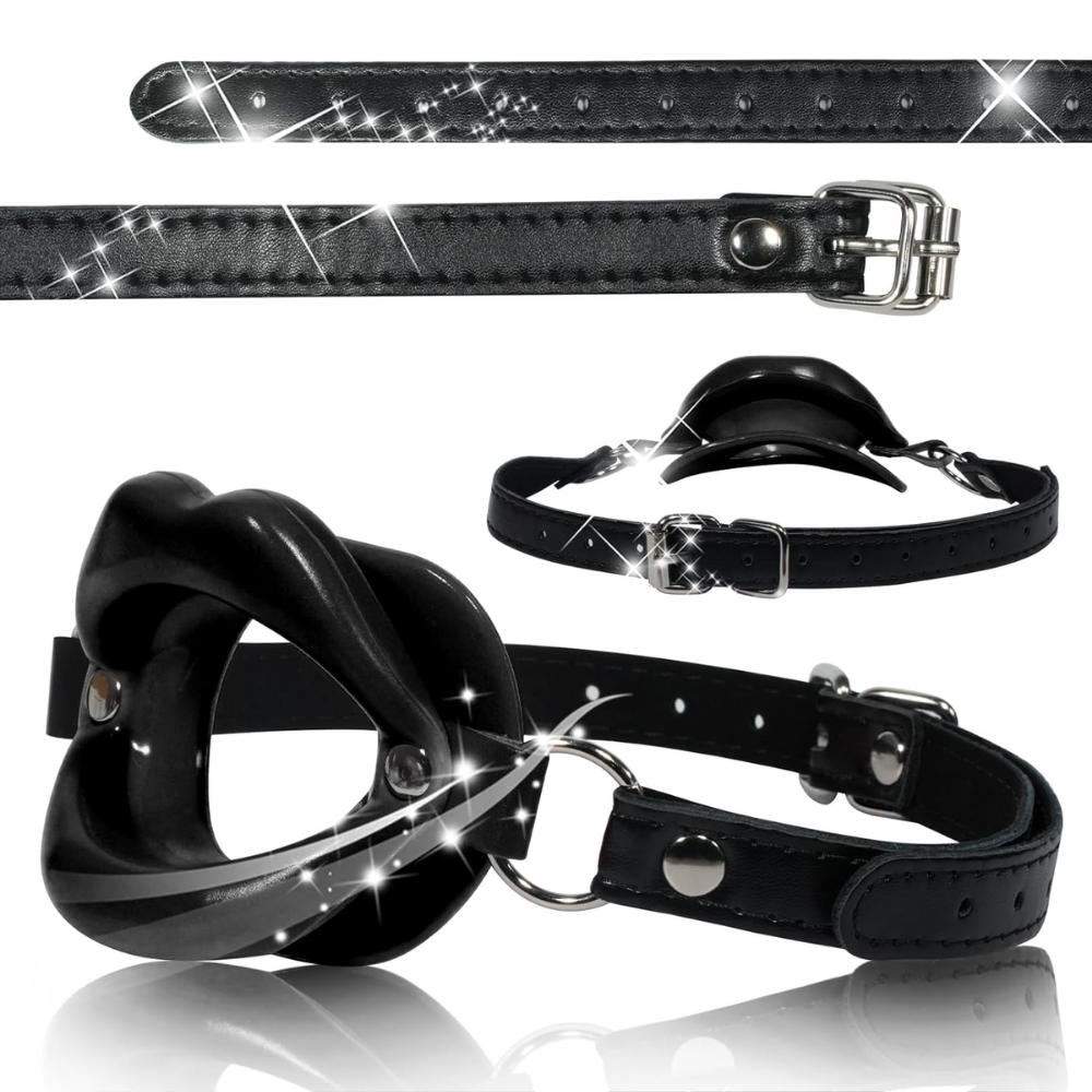 Deri Kemerli Siyah Yumuşak Silikon Dudak Esnek Esaret Ağız Tıkacı Black Open Mouth Lip Gag