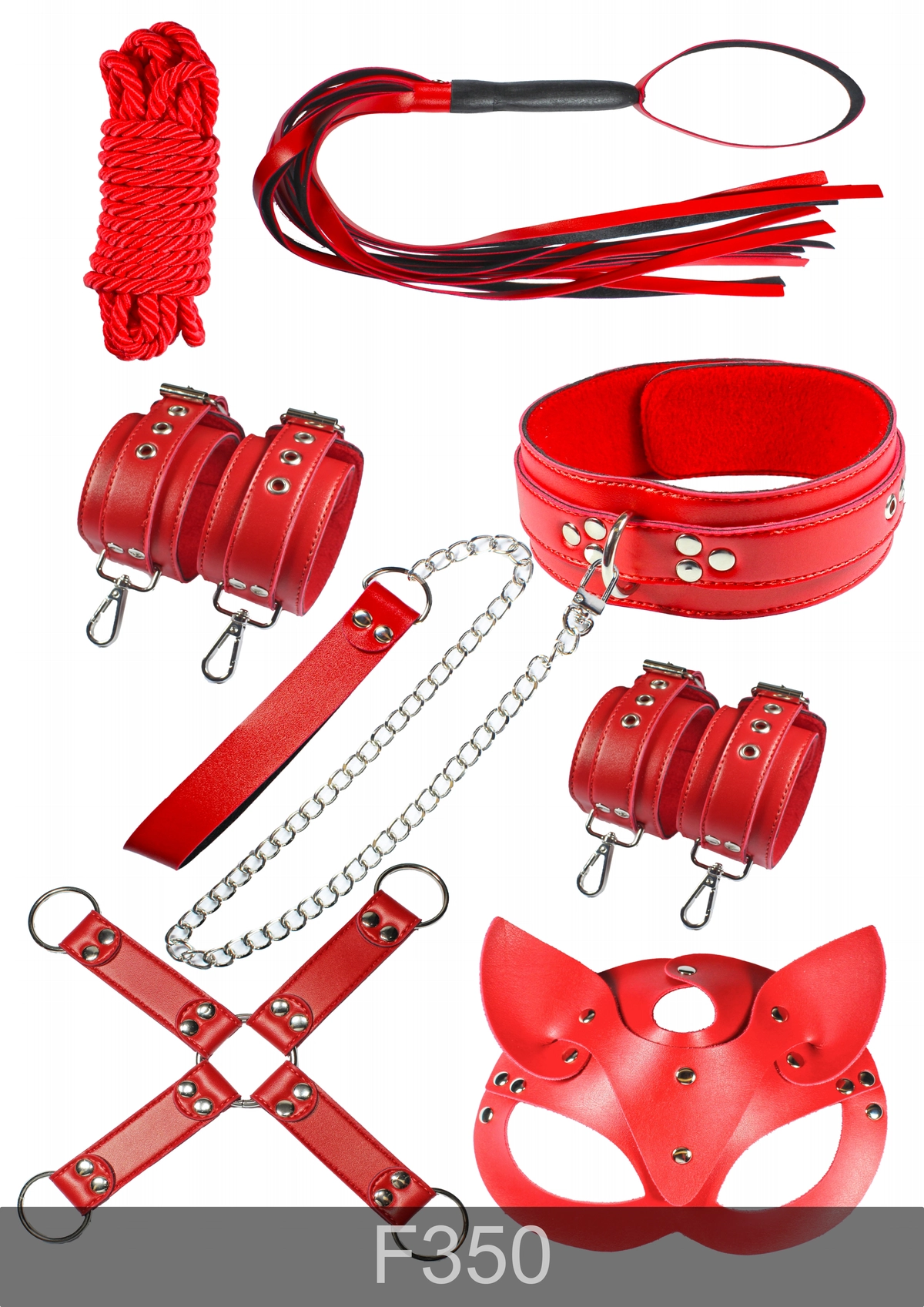 Exotikiss 7’li Kırmızı Fantazi Kelepçe ve Kırbaç Seti – BDSM Aksesuar Seti