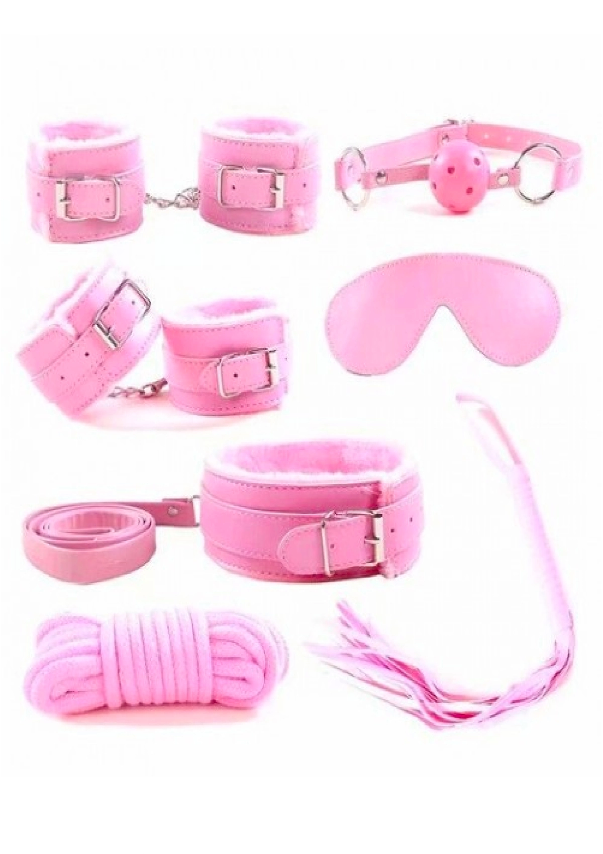 Exotikiss Fantazi Kelepçe Seti 7 Parça – BDSM Fetiş Aksesuar Seti, Pembe