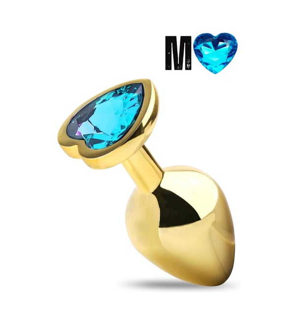Gold paslanmaz çeliğin şık görünümünü mavi kalp taşıyla birleştiren bu orta boy anal plug, pürüzsüz yüzeyi ve dengeli hacmiyle hem estetik hem de keyif odaklı bir kullanım sunar. Hem yeni başlayanlar hem de deneyimli kullanıcılar için güvenli, zarif ve tatmin edici bir seçimdir.