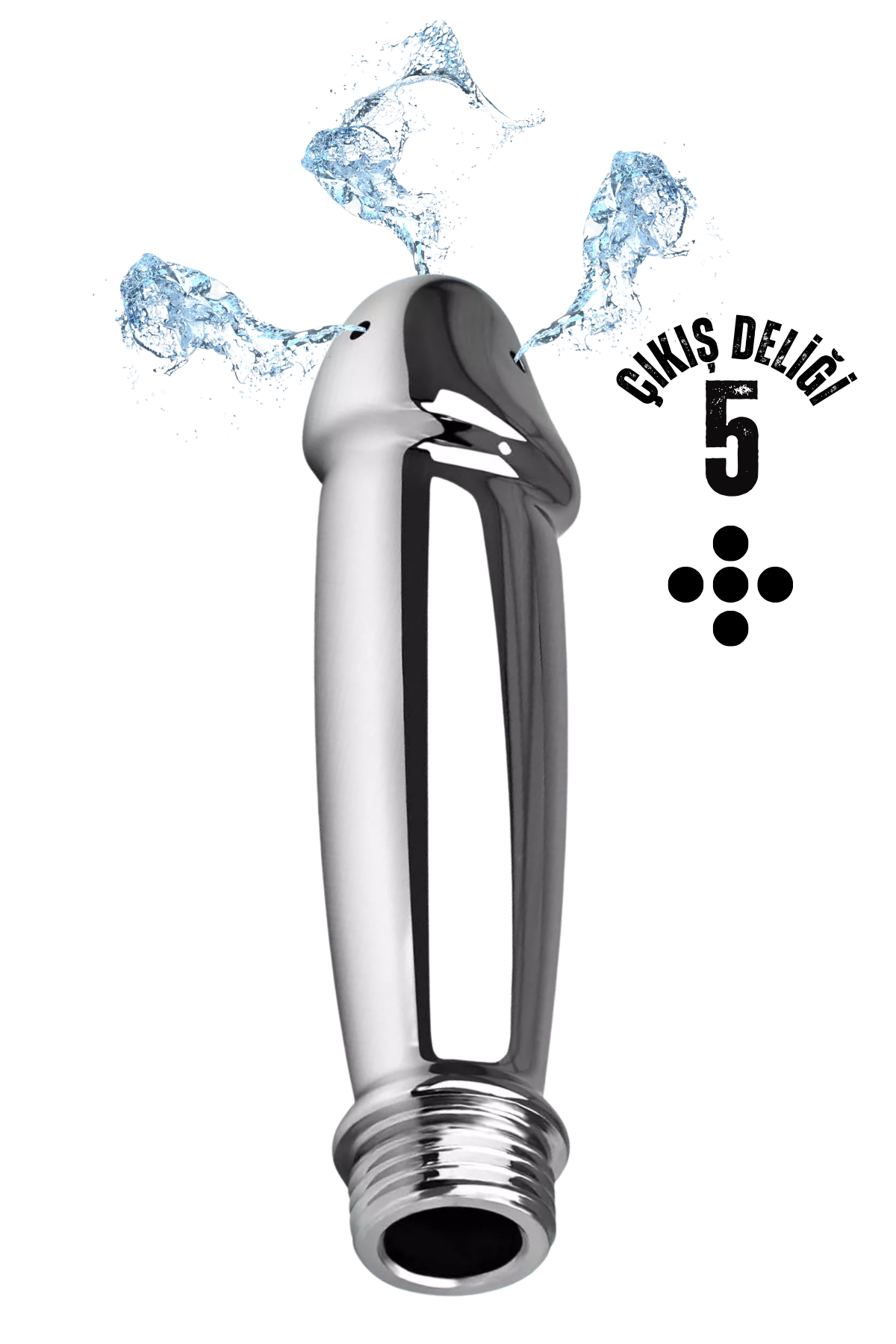 Paslanmaz Çelik Penis Görünümlü 5 Delikli Anal Temizlik Metal Lavman Duş Başlığı