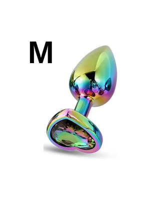 Paslanmaz Çelik Rainbow Renkli Kalpli Taşlı Anal Plug (Orta Boy)
