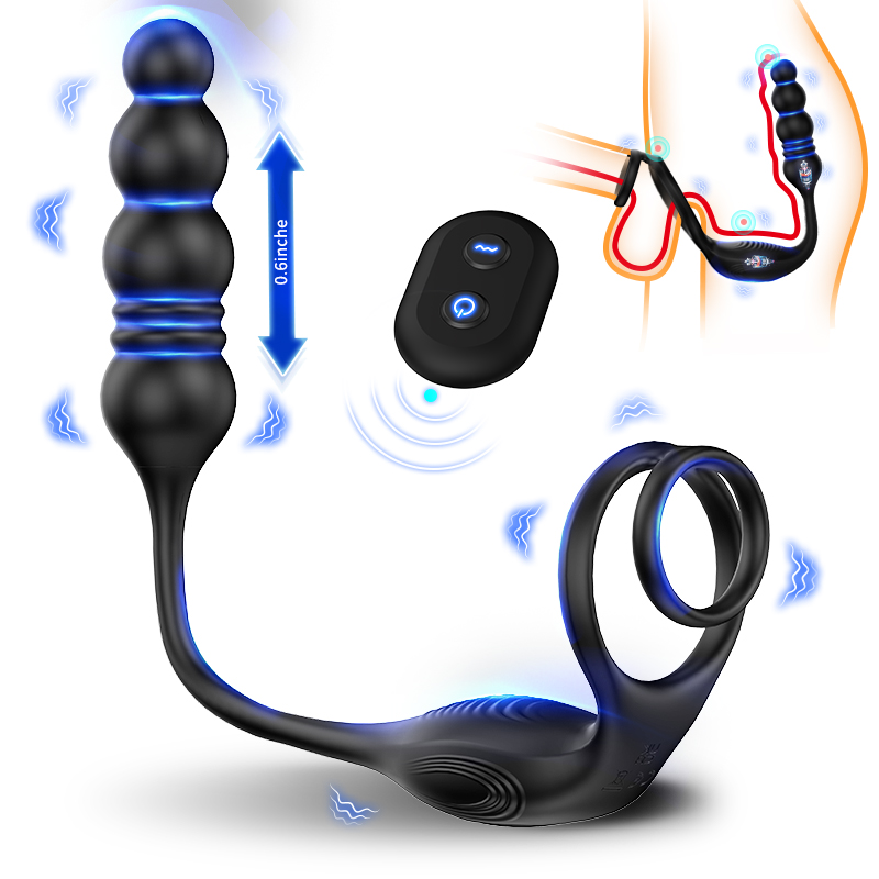 Şarjlı Uzaktan Kumandalı İleri Geri Hareketli Penis Halkalı Beads Perine Prostat Uyarıcı Vibratör