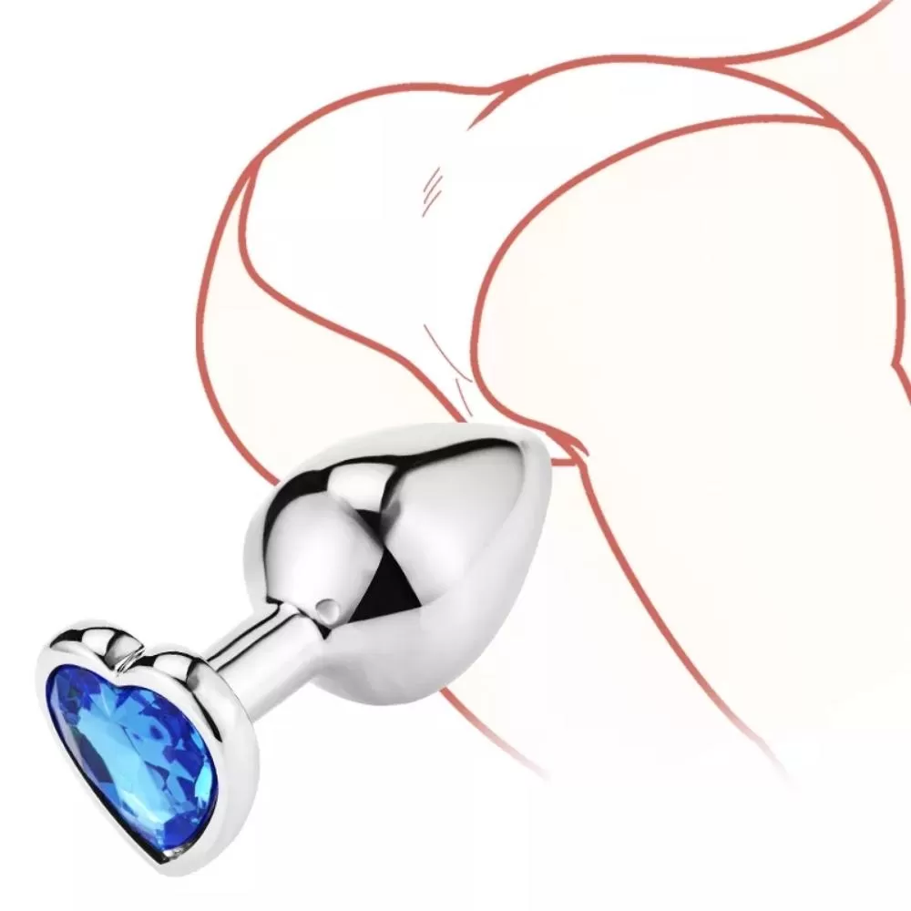 Silver Paslanmaz Çelik Kalp Şeklinde Mavi Taşlı Metal Anal Plug